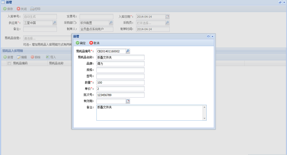 低值易耗品管理软件:易耗品分类及清单均可以通过EXCEL导入。